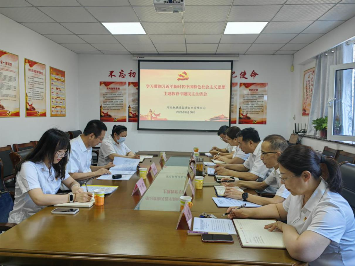陈海河代表领导班子作表态发言。他表示,一是要旗帜鲜明讲政治,不断提高政治能力。要深入学习贯彻习近平新时代中国特色社会主义思想和党的二十大精神,深入贯彻落实习近平总书记视察河北重要讲话精神,切实做到学思用贯通,知信行统一,不断提高政治判断力、政治领悟力、政治执行力,确保党的创新理论在设备公司落地生根、结出丰硕成果。二是要坚持问题导向,从严从细抓好落实。要做好民主生活会“后半篇文章”。把整改作为一项自我革新的重要任务来抓,以实际行动巩固民主生活会成果。要持之以恒加强班子建设,改进工作作风,优化工作效能,确保民主生活会取得实效。三是要凝心聚力共奋进,乘势而上再创佳绩。要以此次民主生活会为契机,把问题整改与推动公司重点工作结合起来,把握新发展阶段,贯彻新发展理念,聚焦主责主业,不断做强做优做大国有外贸企业,把主题教育成果转化为干事创业的强大动力和高质量发展的实际成效,为实现中国式现代化河北国资场景外贸篇贡献设备力量。